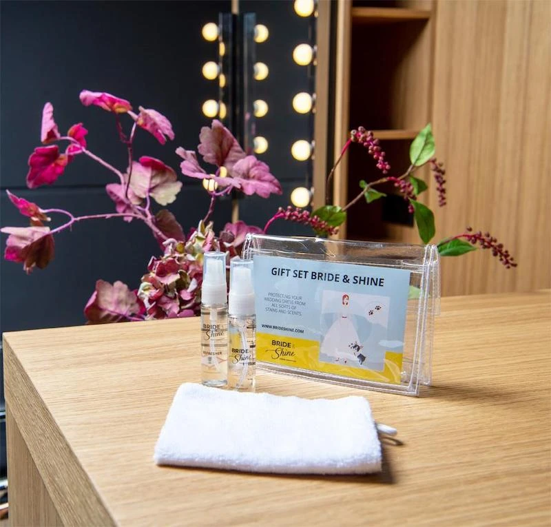 Inhoud: Dress Cleaner, Dress Refresher en Handdesinfecterend middel, inclusief schoonmaakdoekje + tas