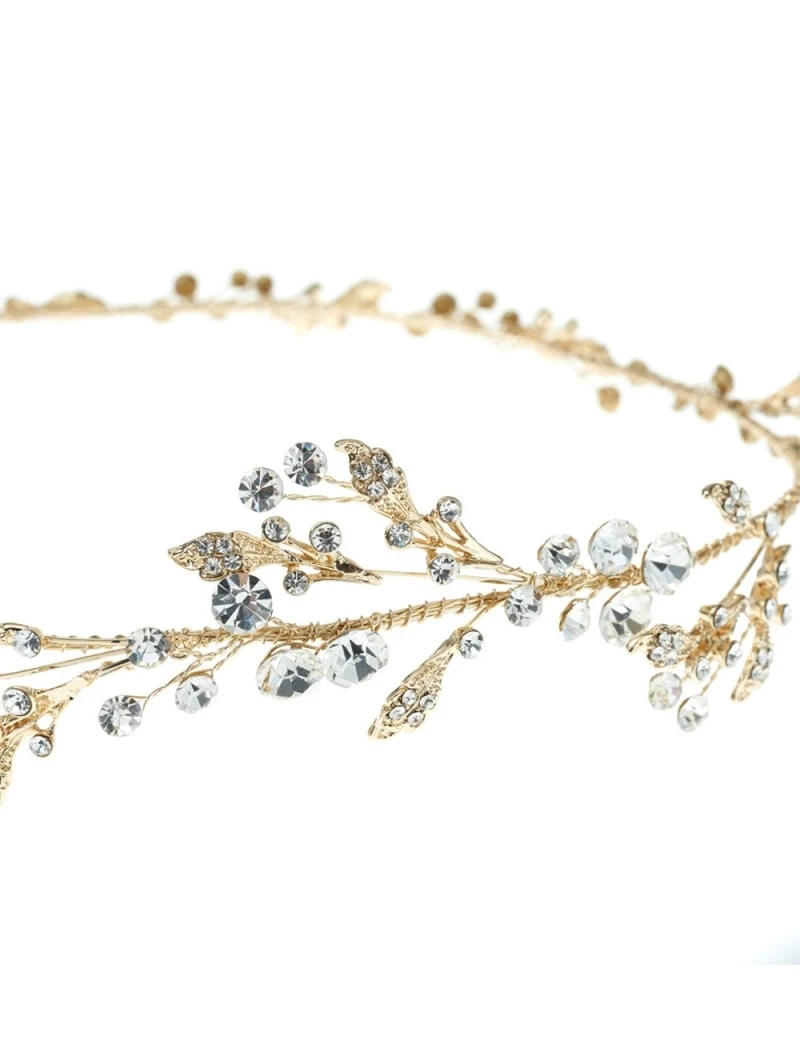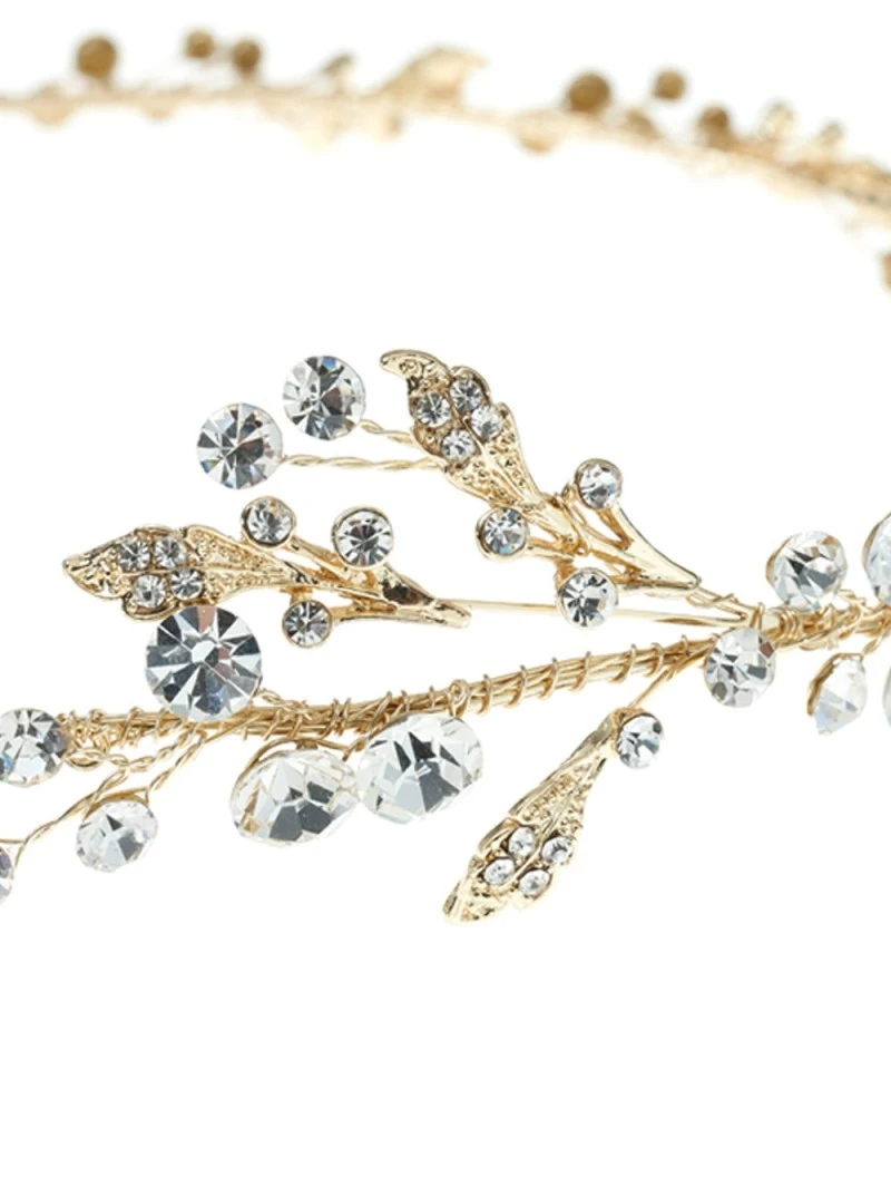 Details: Goudkleurig rond haarstreng met strass steentjes en goudkleurige bladeren