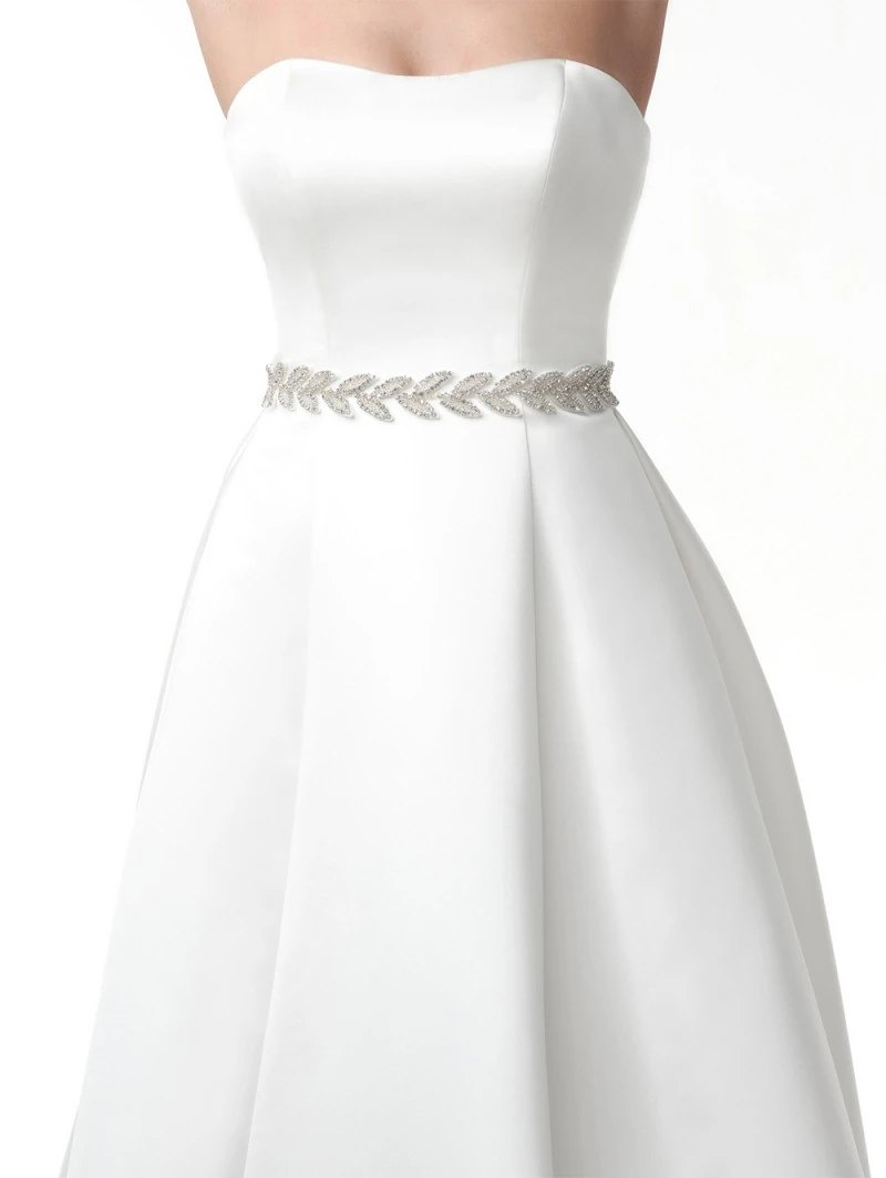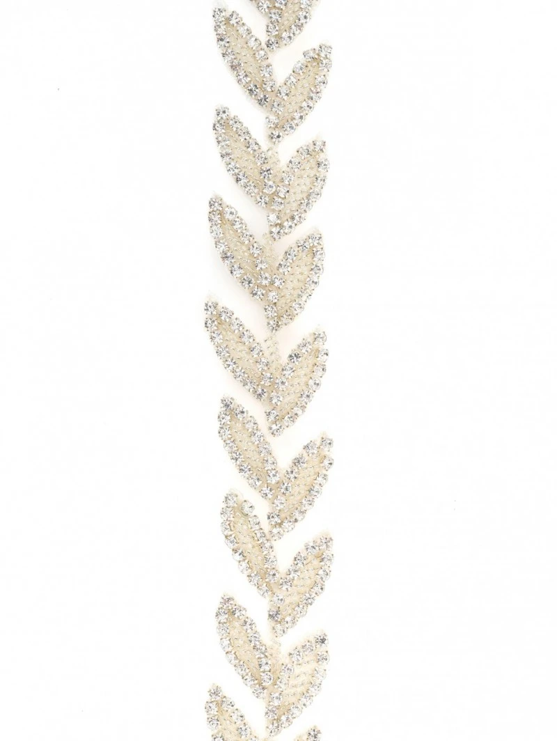 Details: Ivoren riem met bladversiering van strass steentjes