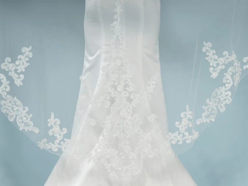 Sluierrand: geborduurde kant, 3D-bloemen en pailletten